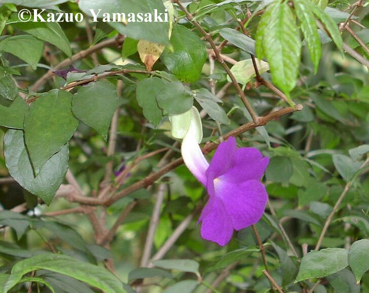 Thunbergia vogeliana   - deutscher Name existiert nicht - Hiroshima, Japan (Zweig mit Blüten); Bild von Kazuo Yamasaki